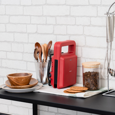 おうちで簡単にル・ルスティック ラクレットが楽しめる調理家電、「mottole ホットサンドメーカー(赤)」が抽選で100名様に当たります。